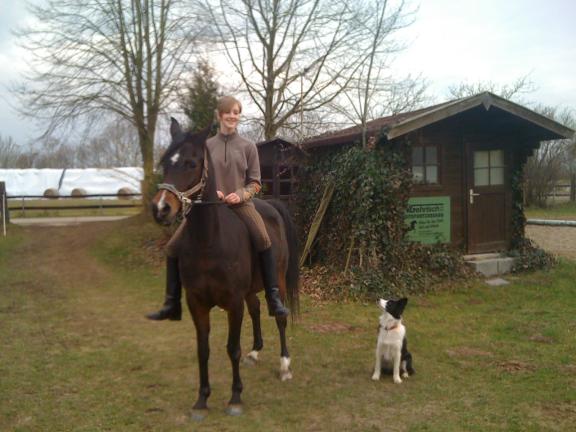 Die beiden sind einfach unzertrennlich, gehen auch fast täglich zusammen zu den Pferden in den Stall und üben eifrig für den ersten VK1 Wettbewerb im THS. Vinnie war für Karfreitag gemeldet, aber leider ist sie vor 3 Tagen läufig geworden.