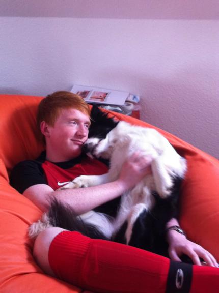 Das andere Bild zeigt Vinnie mit unserem Sohn beim "gemeinsamen" Fernsehen im Sitzsack. So schön kann das Leben sein!